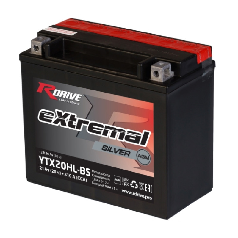 RDrive extremal SILVER 12V 18,9Ah (YTX20HL-BS) AGM